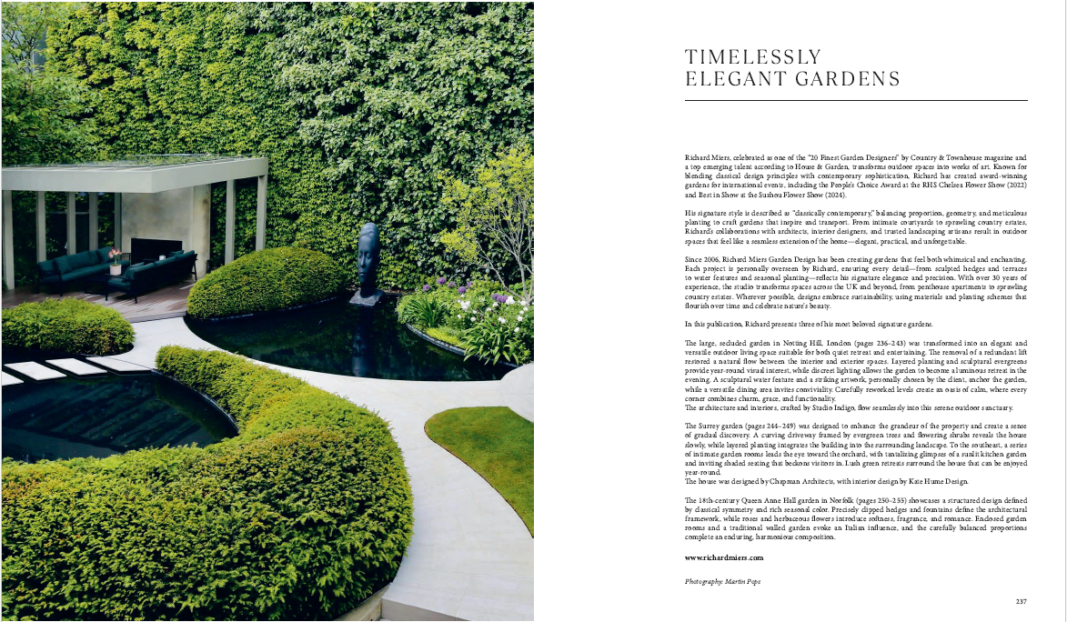 World’s Best Gardens brings together a selection of the most inspiring and beautifully designed landscapes from around the world. Richard Miers Garden Design is proud to be included, reflecting our commitment to creating gardens that are both timeless and enduring.